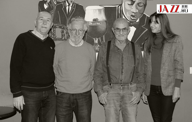 Még egy dolgot megosztanék. A műtéte előtt hezitált, hogy elmenjen-e a kedvenc (sok kedvence volt, de a legkedvesebb) jazz-zenésze, Bolla Gábor koncertjére. Felajánlottam, hogy menjünk úgy együtt, ahogy a Harmóniás pénteki koncertekre mentünk minden alkalommal, hogy felveszem a lakásánál, és addig maradunk, ameddig akar. Nekem akkor már rengeteg munkám volt a jazzfesztivállal, ezért először elutasította, de aztán rábeszéltem, hogy menjünk, mert ki tudja, mikor jön Gabi újra haza. Sztraka Feri is jött velünk (ő készítette az alábbi fotót), aki a legújabb tag a Harmónia Jazzműhelyben.